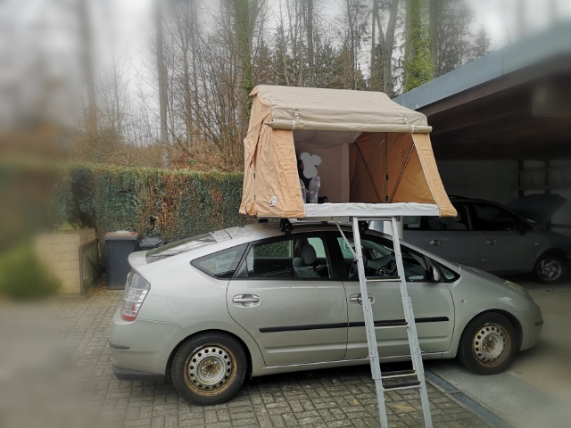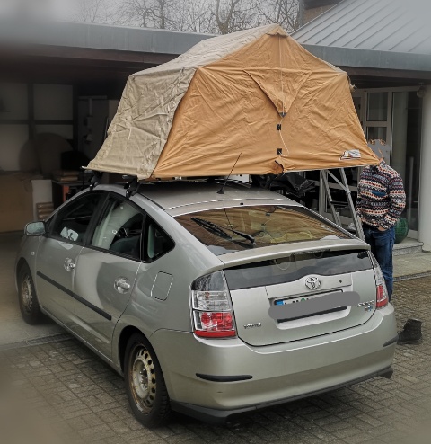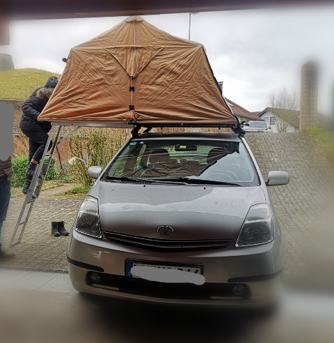 Habe heute auf den 2005er Prius 2 ein Dachzelt Bj. 2000 angepasst. Damit ist man immer noch aktuell. Im kommenden Sommer fährt die "next generation" damit nach Norwegen bis zum nördlichen Anschlagspunkt. "Die Alten" dürfen die Kiste dann ab Tromsö übernehmen und zurück bis an die CH Grenze fahren. Hier ein paar Fotos der heutigen Dachzeltanpassung.